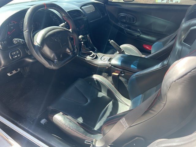 This 1999 Chevrolet Corvette is equipped with the following options: Performance Handling Package (Stiffer Springs and Stiffer Stabilizer Bars), Preferred Equipment Group 1SA, 3.15 Performance Axle Ratio, 4-Wheel Disc Brakes, 6 Speakers, 6-Way Power Passenger Seat, ABS brakes, Air Conditioning, Alloy wheels, AMFM radio, Block heater, Bodyside Moldings, Bumpers: body-color, Cassette, Driver vanity mirror, Dual front impact airbags, Fog Lamps, Four wheel independent suspension, Front anti-roll bar, Front Bucket Seats, Front Center Armrest wStorage, Front Floor Mats, Front reading lights, Heated door mirrors, Illuminated entry, Leather Adjustable Sport Bucket Seats, Leather Bucket Seats, Leather Seat Trim, Leather Shift Knob, Leather steering wheel, Luggage Shade & Parcel Net, Outside temperature display, Panic alarm, Passenger vanity mirror, Power door mirrors, Power driver seat, Power steering, Power windows, Rear anti-roll bar, Rear window defroster, Remote keyless entry, Security system, Speed control, Speed-sensing steering, Sport steering wheel, Tachometer, Tilt steering wheel, Traction control, Trip computer, Variably intermittent wipers, and Voltmeter.