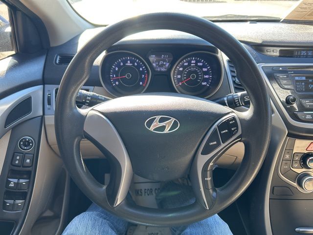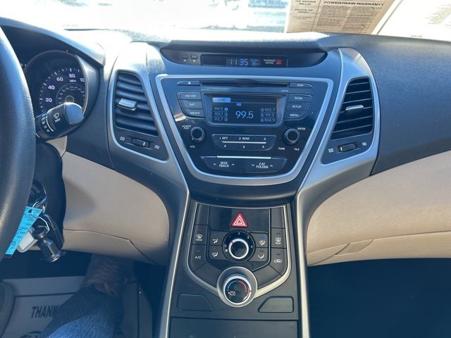 This 2016 Hyundai Elantra is equipped with the following options: Option Group 1, 15'' Steel Wheels wCovers, 4-Wheel Disc Brakes, 6 Speakers, ABS brakes, Air Conditioning, AMFM radio: SiriusXM, Brake assist, Bumpers: body-color, Cargo Net, Cargo Tray, Carpeted Floor Mats, CD player, Delay-off headlights, Driver door bin, Driver vanity mirror, Dual front impact airbags, Dual front side impact airbags, Electronic Stability Control, Front anti-roll bar, Front Bucket Seats, Front Center Armrest wStorage, Front reading lights, Front wheel independent suspension, Illuminated entry, Low tire pressure warning, Occupant sensing airbag, Outside temperature display, Overhead airbag, Overhead console, Panic alarm, Passenger door bin, Passenger vanity mirror, Power door mirrors, Power steering, Power windows, Premium Cloth Seat Trim, Radio: AMFMSiriusXMCDMP3 Audio System, Rear anti-roll bar, Rear Bumper Applique, Rear seat center armrest, Rear window defroster, Remote keyless entry, Security system, Speed control, Speed-sensing steering, Split folding rear seat, Tachometer, Tilt steering wheel, Traction control, Trip computer, and Variably intermittent wipers.