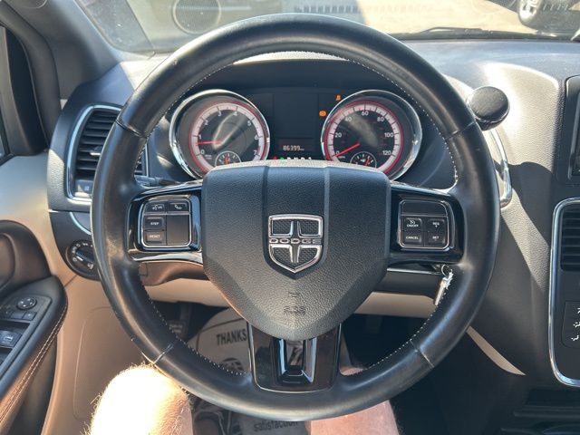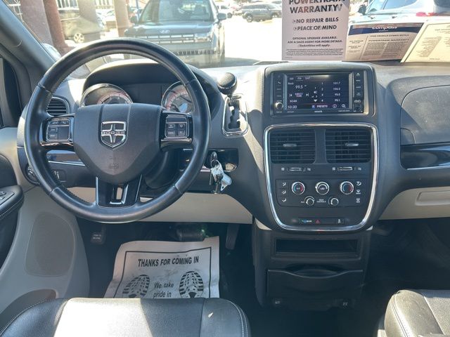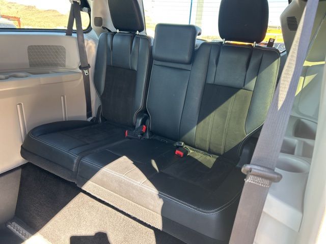 This 2019 Dodge Grand Caravan is equipped with the following options: Quick Order Package 29P (Black Finish IP Bezel and Bright Belt Moldings), 17'' x 6.5'' Aluminum Wheels, 2nd Row Stow 'N Go Bucket Seats, 3.16 Axle Ratio, 3rd row seats: split-bench, 4-Wheel Disc Brakes, 40GB Hard Drive w28GB Available, 6 Speakers, 6.5'' Touchscreen Display, ABS brakes, Air Conditioning, Alloy wheels, AMFM radio, Anti-whiplash front head restraints, Audio Jack Input for Mobile Devices, Auto-dimming Rear-View mirror, Bodyside moldings, Brake assist, Bumpers: body-color, CD player, Delay-off headlights, Driver door bin, Driver vanity mirror, Driver's Seat Mounted Armrest, Dual front impact airbags, Dual front side impact airbags, Electronic Stability Control, Front anti-roll bar, Front Bucket Seats, Front dual zone AC, Front fog lights, Front reading lights, Front wheel independent suspension, Fully automatic headlights, Heated door mirrors, Illuminated entry, Integrated Roof Rail Crossbars, Knee airbag, Leather Shift Knob, Leather Wrapped Steering Wheel, Low tire pressure warning, Manufacturer's Statement of Origin, Occupant sensing airbag, Outside temperature display, Overhead airbag, Overhead console, Panic alarm, ParkView Rear Back-Up Camera, Passenger door bin, Passenger seat mounted armrest, Passenger vanity mirror, Power door mirrors, Power driver seat, Power Liftgate, Power steering, Power windows, Premium Seats wSuede Inserts, Radio: 430, Rear air conditioning, Rear Air Conditioning wHeater, Rear window defroster, Rear window wiper, Reclining 3rd row seat, Remote keyless entry, Roof rack, Security system, Speed control, Split folding rear seat, Spoiler, Steering wheel mounted audio controls, Tachometer, Telescoping steering wheel, Tilt steering wheel, Touring Suspension, Traction control, Trip computer, and Variably intermittent wipers.