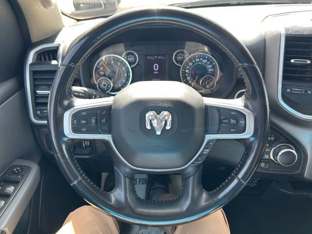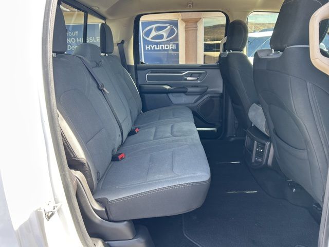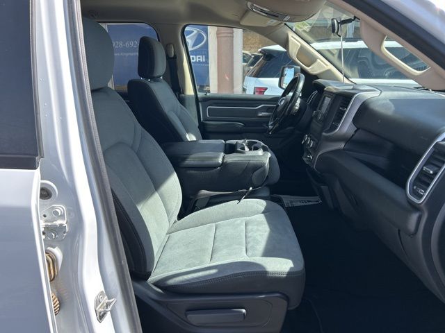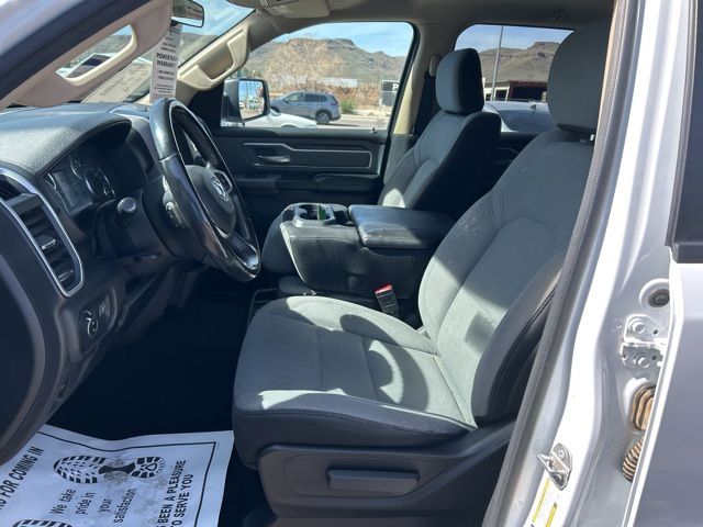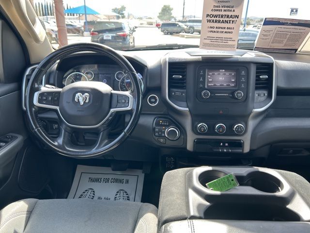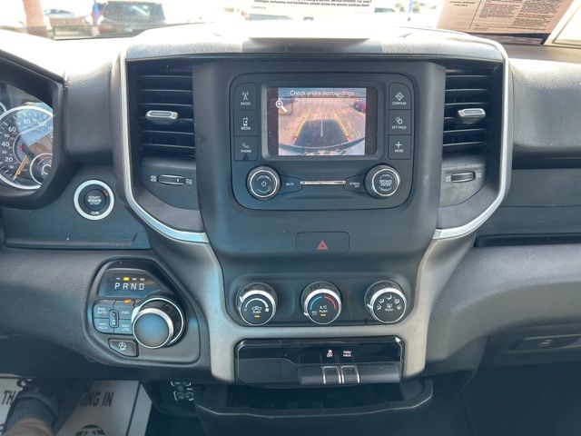 This 2020 Ram 1500 is equipped with the following options: Quick Order Package 23Z Big Horn (Big Horn Badge), 3 Rear Seat Head Restraints, 3.21 Rear Axle Ratio, 4 Way Front Headrests, 4-Wheel Disc Brakes, 48V Belt Starter Generator, 6 Speakers, ABS brakes, Air Conditioning, Alloy wheels, AMFM radio, Brake assist, Bumpers: chrome, Cloth Bench Seat, Compass, Delay-off headlights, Driver door bin, Dual front impact airbags, Dual front side impact airbags, Electronic Stability Control, Front anti-roll bar, Front Center Armrest wStorage, Front fog lights, Front reading lights, Front Seat Back Map Pockets, Front wheel independent suspension, Fully automatic headlights, GPS Antenna Input, Heated door mirrors, Illuminated entry, Leather steering wheel, Low tire pressure warning, Manufacturer's Statement of Origin, Occupant sensing airbag, Outside temperature display, Overhead airbag, Overhead console, Panic alarm, ParkView Rear Back-Up Camera, Passenger door bin, Passenger vanity mirror, Power door mirrors, Power steering, Power windows, Radio data system, Radio: Uconnect 3 w5'' Display, Rear 6040 Folding Seat, Rear anti-roll bar, Rear seat center armrest, Rear step bumper, Remote keyless entry, Speed control, Split folding rear seat, Steering wheel mounted audio controls, Tachometer, Telescoping steering wheel, Tilt steering wheel, Traction control, Trip computer, Variably intermittent wipers, Voltmeter, and Wheels: 18'' x 8'' Cast-Aluminum Painted.