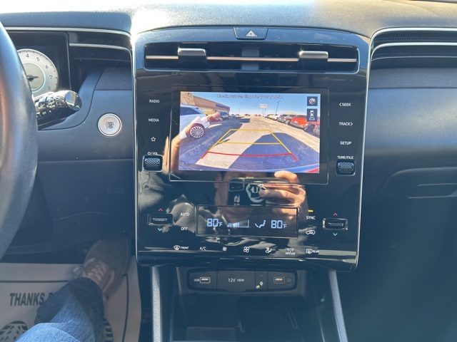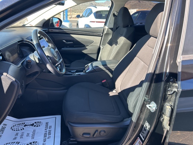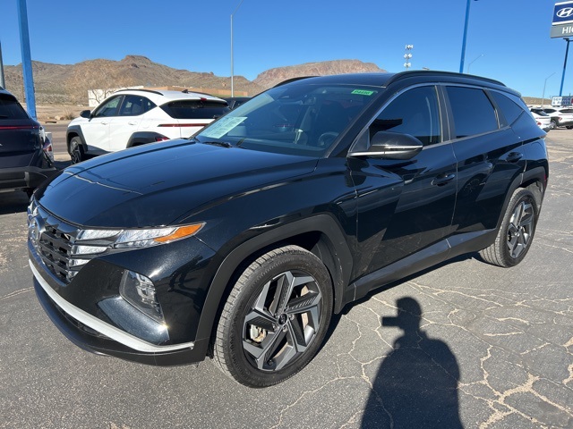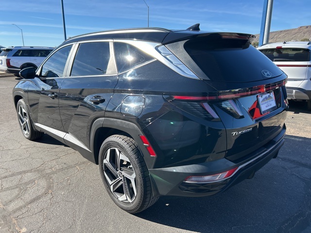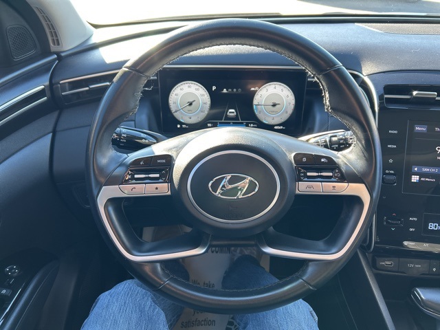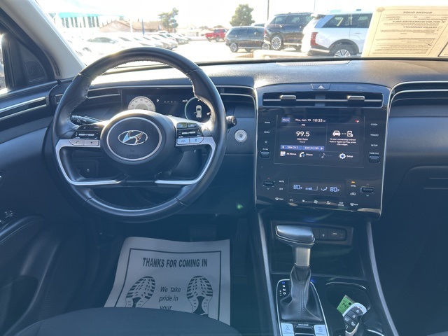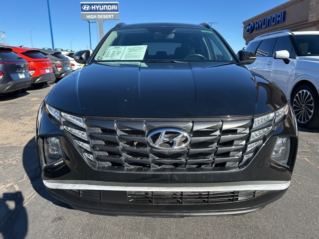 This 2022 Hyundai Tucson is equipped with the following options: Cargo Package (Cargo Net, Cargo Tray, and First Aid Kit), Convenience Package (10.25'' Digital Instrument Cluster, Auto-Dimming Interior Mirror wHomelink, Digital Key, Dual Automatic Temperature Control, Hands-Free Power Liftgate wAuto-Open, Leather-Wrapped Shift Knob, Leather-Wrapped Steering Wheel, LED Interior Lights (Room, Map), Option Group 02, Power Sunroof, Ultrasonic Rear Occupant Alert, Wheels: 19'' x 7.5J'' Machine-Face Finish Alloy, and Wireless Phone Charging), AWD, 3.648 Axle Ratio, 4-Wheel Disc Brakes, 6 Speakers, ABS brakes, Air Conditioning, Alloy wheels, AMFM radio: SiriusXM, Apple CarPlay & Android Auto, Auto High-beam Headlights, Brake assist, Bumpers: body-color, Carpeted Floor Mats, Delay-off headlights, Driver door bin, Driver vanity mirror, Dual front impact airbags, Dual front side impact airbags, Electronic Stability Control, Emergency communication system: Blue Link Connected Car Service (3-year complimentary subscription), Four wheel independent suspension, Front and Rear Mudguards, Front anti-roll bar, Front Bucket Seats, Front Center Armrest, Front reading lights, Fully automatic headlights, Heated door mirrors, Heated Front Bucket Seats, Heated front seats, Illuminated entry, Low tire pressure warning, Occupant sensing airbag, Outside temperature display, Overhead airbag, Overhead console, Panic alarm, Passenger door bin, Passenger vanity mirror, Power door mirrors, Power driver seat, Power steering, Power windows, Radio data system, Radio: AMFMHDSiriusXM Audio System, Rear anti-roll bar, Rear Bumper Applique, Rear seat center armrest, Rear window defroster, Rear window wiper, Remote keyless entry, Roof rack: rails only, Security system, Speed control, Split folding rear seat, Spoiler, Stain & Odor Resistant Cloth Seat Trim, Steering wheel mounted audio controls, Tachometer, Telescoping steering wheel, Tilt steering wheel, Traction control, Trip computer, Turn signal indicator mirrors, Variably intermittent wipers, and Wheels: 17'' x 7.0J'' Alloy.