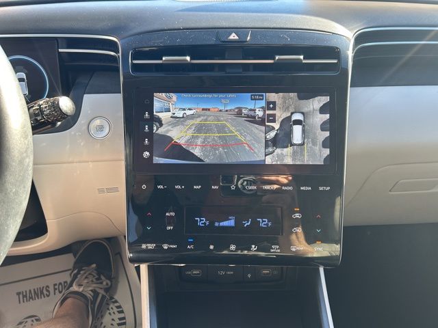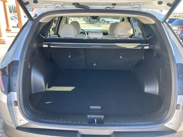 This 2024 Hyundai Tucson Plug-In Hybrid is equipped with the following options: Option Group 01, I4, 3.32 Axle Ratio, 4-Wheel Disc Brakes, 8 Speakers, ABS brakes, Air Conditioning, Alloy wheels, AMFM radio: SiriusXM, Apple CarPlay & Android Auto, Auto High-beam Headlights, Auto-dimming Rear-View mirror, Automatic temperature control, Brake assist, Bumpers: body-color, Cargo Cover, Carpeted Floor Mats, Delay-off headlights, Driver door bin, Driver vanity mirror, Dual front impact airbags, Dual front side impact airbags, Electronic Stability Control, Emergency communication system, Exterior Parking Camera Rear, First Aid Kit, Four wheel independent suspension, Front anti-roll bar, Front Bucket Seats, Front Center Armrest, Front dual zone AC, Front reading lights, Fully automatic headlights, Garage door transmitter: HomeLink, Heated & Ventilated Front Bucket Seats, Heated door mirrors, Heated front seats, Heated rear seats, Heated steering wheel, Illuminated entry, Leather Seat Trim, Low tire pressure warning, Memory seat, Navigation System, Occupant sensing airbag, Outside temperature display, Overhead airbag, Overhead console, Panic alarm, Passenger door bin, Passenger vanity mirror, Power door mirrors, Power driver seat, Power Liftgate, Power moonroof, Power passenger seat, Power steering, Power windows, Radio data system, Radio: Bose Premium wAMFMHD Audio System, Rain sensing wipers, Rear anti-roll bar, Rear reading lights, Rear seat center armrest, Rear side impact airbag, Rear window defroster, Rear window wiper, Remote keyless entry, Roof Rack Cross Rails, Security system, Speed control, Split folding rear seat, Spoiler, Steering wheel mounted audio controls, Tachometer, Telescoping steering wheel, Tilt steering wheel, Traction control, Trip computer, Turn signal indicator mirrors, Variably intermittent wipers, Ventilated front seats, and Wheels: 19'' x 7.5J Alloy.