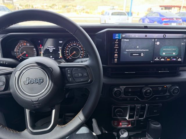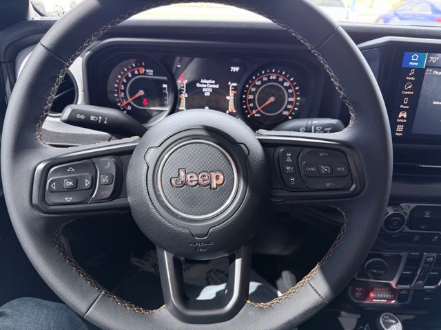 This 2024 Jeep Gladiator is equipped with the following options: Quick Order Package 24W Willys (240 Amp Alternator, 4-Wheel Drive Decal, 97 MPH Vehicle Max Speed Calibration, Advanced Brake Assist, Air Conditioning wAuto Temperature Control, Automatic Headlamps, Auxiliary Switches, Black Grille, Body Color Fender Flares (2-Piece), Class IV Receiver Hitch, Cluster 7.0'' TFT Color Display, Daytime Running Lamps LED Accents, Deep Tint Sunscreen Windows, E-Locker Rear Axle, Enhanced Adaptive Cruise Control, Front 1-Touch Down Power Windows, Front Door Locks 2-Door Passive Entry, Front Heavy Duty Red Accent Shock Absorbers, Front LED Fog Lamps, Full Speed Forward Collision Warning Plus, Heavy-Duty Engine Cooling, LED Premium Reflector Headlamps, LED Taillamps, Mold In Color Bumper wGloss Black, MOPAR All-Weather Slush Mats, Off-Road Plus Mode, Power Heated Mirrors, Power Tailgate Lock, Premium Wrapped Steering Wheel, Protection Sill Rails, Rear Heavy Duty Red Accent Shock Absorbers, Remote Keyless Entry, Security Alarm, Speed Sensitive Power Locks, Sun Visors wIlluminated Vanity Mirrors, Trailer Hitch Zoom, Wheels: 17'' x 7.5'' Painted Black, Willy's Suspension, and Willys Hood Decal), 110 MPH Vehicle Max Speed Calibration, 12.3'' Touchscreen Display, 3.73 Rear Axle Ratio, 4-Wheel Disc Brakes, 4G LTE Wi-Fi Hot Spot, 8 Speakers, ABS brakes, Air Conditioning, Alexa Built-In, AMFM radio: SiriusXM with 360L, Apple CarPlay, Apple CarPlayAndroid Auto, Black 3-Piece Hard Top, Brake assist, Cloth Low-Back Bucket Seats, Compass, Connectivity - USCanada, Delay-off headlights, Disassociated Touchscreen Display, Driver door bin, Driver vanity mirror, Dual front impact airbags, Dual front side impact airbags, Electronic Stability Control, Emergency communication system: Jeep Connect, Front anti-roll bar, Front Bucket Seats, Front Center Armrest wStorage, Front fog lights, Front reading lights, Google Android Auto, Integrated Center Stack Radio, Integrated roll-over protection, Low tire pressure warning, Normal Duty Suspension, Occupant sensing airbag, Outside temperature display, Overhead airbag, ParkView Rear Back-Up Camera, Pass